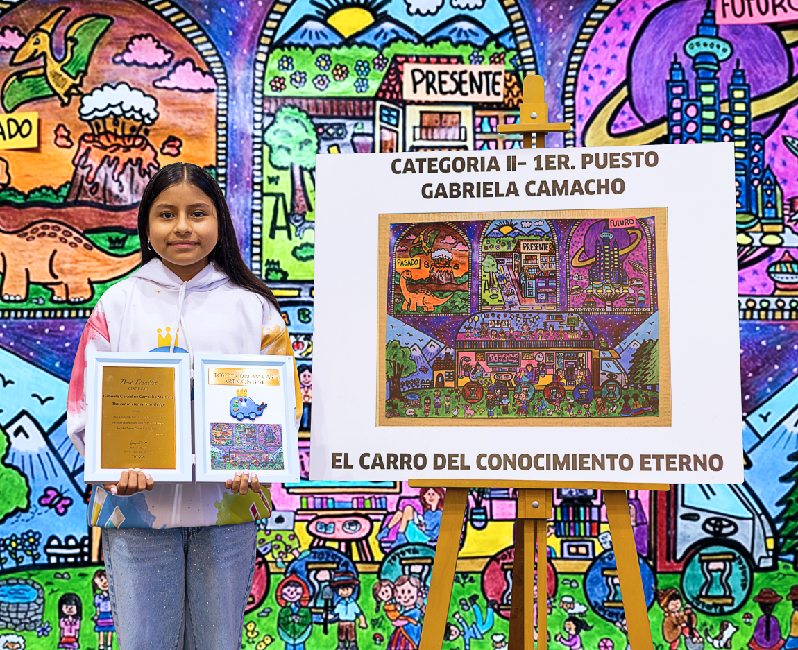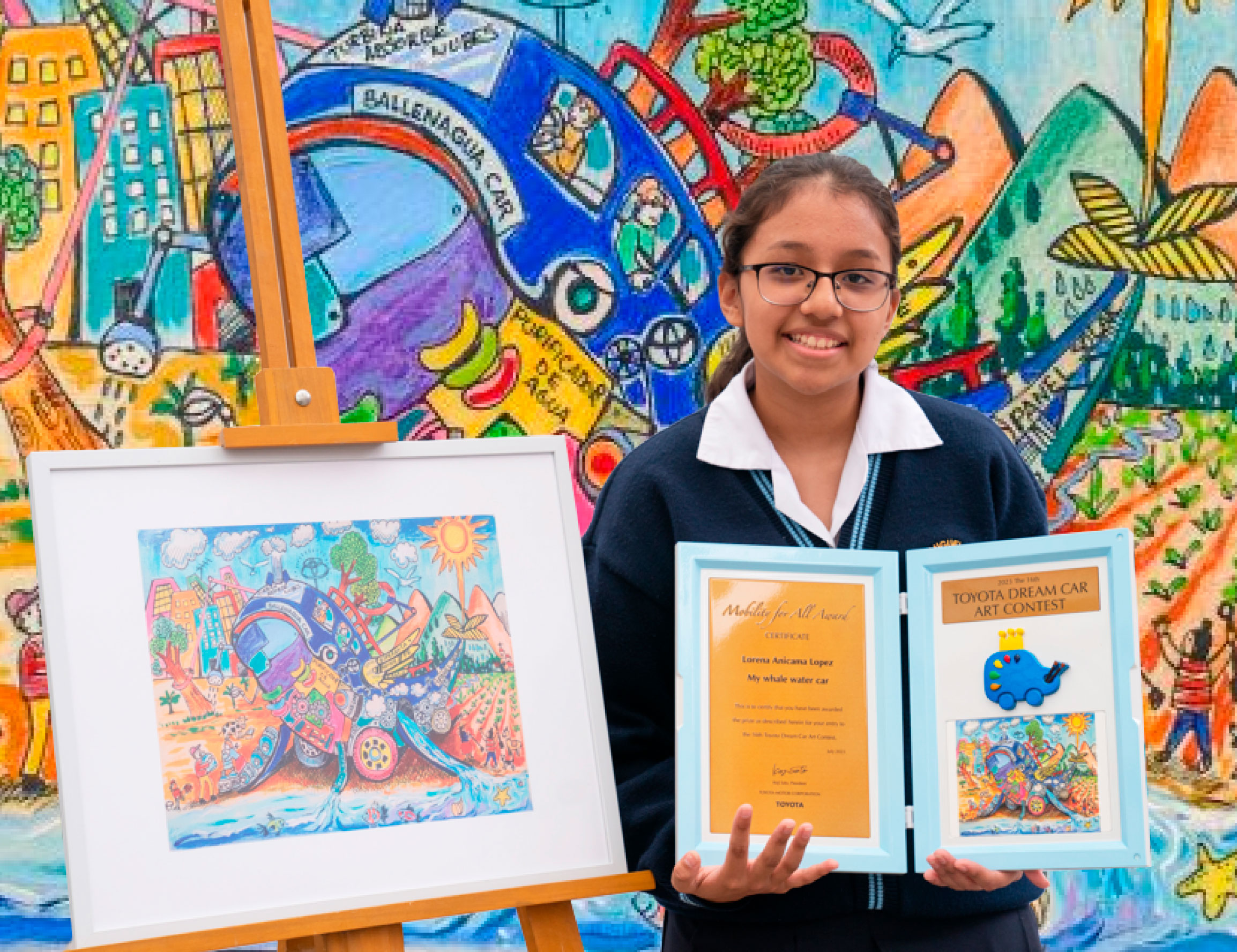 Con este dibujo "Mi ballenagua car", Lorena Anicama, nuestra representante peruana, fue la ganadora en la categoría "Movilidad para todos” del concurso mundial Toyota Dream Car Art Contest.
