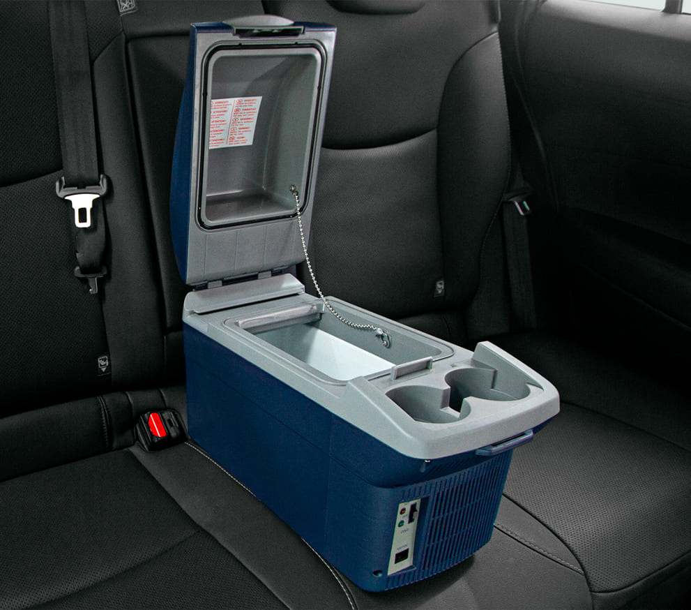 Ideal para tus paseos. Mantiene fríos los alimentos y bebidas (-15°C sobre la temperatura ambiente) y cuenta con función de calefacción (hasta 60°C). Capacidad máxima aprox. de 8 litros.